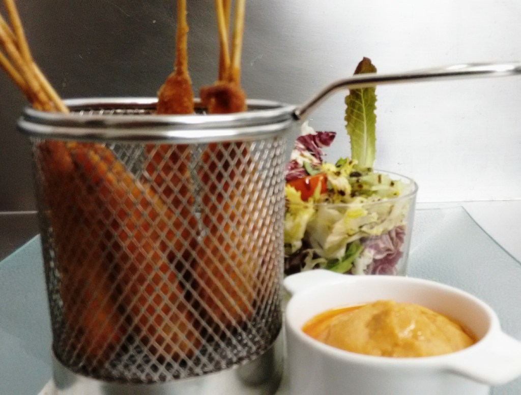 - Broxetes de llagostí amb salsa romesco (6un.) 9,95.
