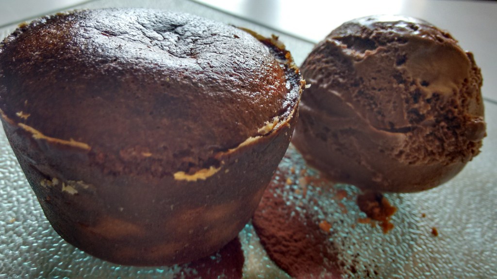 -Coulant de xocolata amb gelat de nata*(temps cocció 10minuts.)
