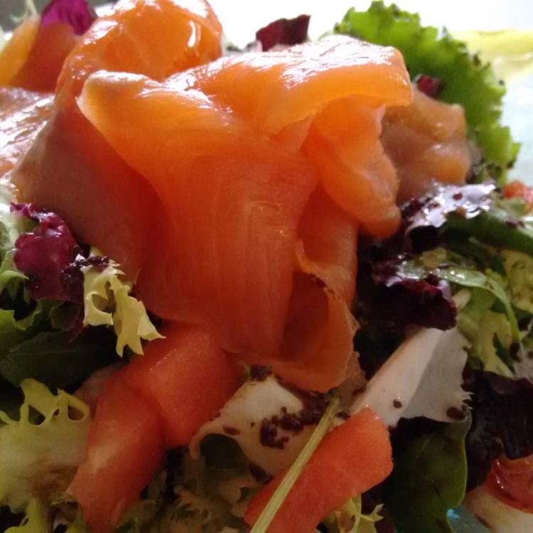 -Amanida de salmó fumat amb fruita de temporada i nous.